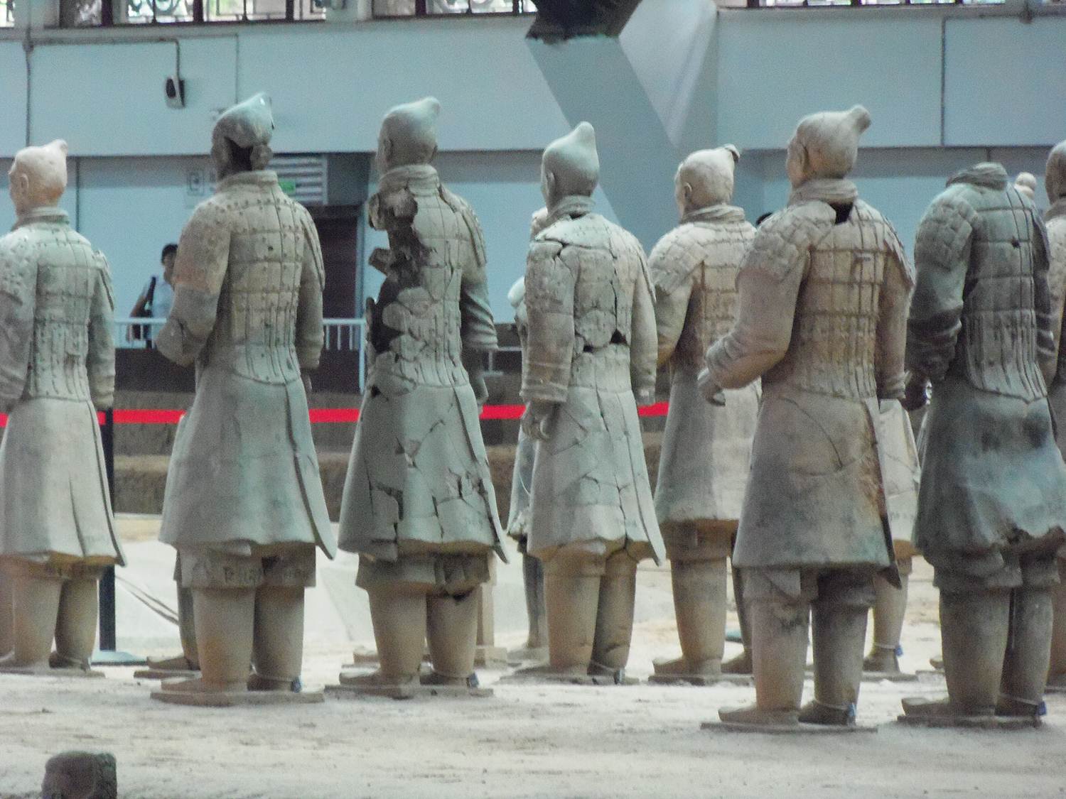 We heard about the Terra Cotta Warriors and Horses, which were discovered by local farmers. The figures were originally brightly painted, but the paint is destroyed by exposure to the air. Archaeologists are continuing to unearth and reassemble these figures at the site.